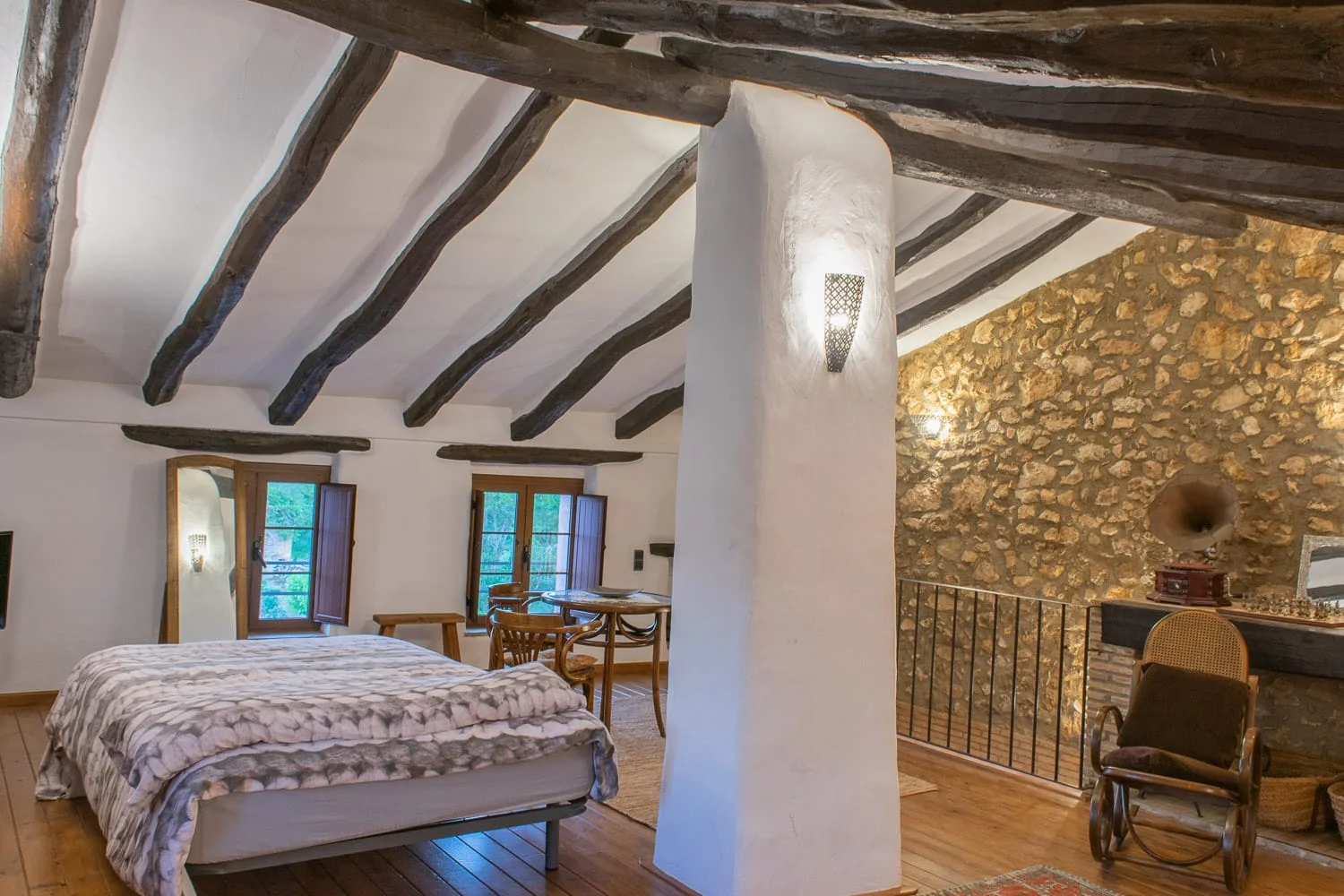 Com a allotjament rural independent, té capacitat per a vuit persones i permet al grup tenir l’espai en exclusiva, un punt clau quan es volen generar converses de qualitat i un clima de confiança. Disposa de tres habitacions dobles, un bany complet i una cuina totalment equipada, molt útil per organitzar moments compartits (esmorzars tranquils, pauses de cafè o fins i tot activitats de cuina col·laborativa). La masia compta també amb una àmplia sala d’estar amb sofà-llit, llar de foc, televisor i wifi, que pot funcionar com a “sala base” per a sessions de treball, reunions informals, debriefings després d’una activitat o espais de reflexió en grup. El fet de tenir una zona interior confortable facilita poder alternar dinàmiques més estructurades amb moments distesos, especialment si el temps no acompanya.